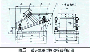 圖五、圖六注:1、篩體 2、振動(dòng)電機(jī) 3、下料斗 4、減振彈簧 5、支座 |