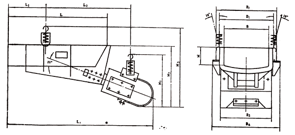 電磁振動(dòng)給料機(jī)是一種新型的給料設(shè)備,它和其它給料設(shè)備相比具有如下特點(diǎn): (1)體積小,重量輕,結(jié)構(gòu)簡(jiǎn)單,安裝方便,無(wú)轉(zhuǎn)動(dòng)部件不需潤(rùn)滑,維護(hù)方便,運(yùn)行費(fèi)用底。 (2)電磁振動(dòng)給料機(jī)由于運(yùn)用了機(jī)械振動(dòng)學(xué)的共振原理,雙質(zhì)體在底臨界近共振狀態(tài)下工作,因而消耗電能少。 (3)由于可以瞬時(shí)的改變和啟閉料流,所以給料量有較高的精度,并可以實(shí)現(xiàn)生產(chǎn)流程地集中控制和自動(dòng)控制。 (4)本系列電振動(dòng)的控制設(shè)備采用了可控硅半波振流線路,因此在使用過(guò)程中可以通過(guò)調(diào)節(jié)可控硅開(kāi)放角的辦法方便地?zé)o級(jí)調(diào)節(jié)給料量。 (5)由于給料槽中的物體在給料過(guò)程中連續(xù)的被拋起,并按拋物線的軌跡向前進(jìn)行跳躍運(yùn)動(dòng),因此給料槽的磨損較小。 (6)本系列電振機(jī)不適用300℃以上的灼熱物料和具有防爆要求的場(chǎng)合